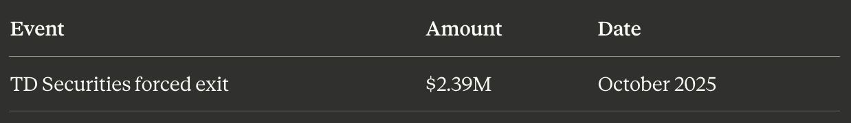 TD Securities loss: $2.39M closing failed short (Kitco, Oct 16 2025)