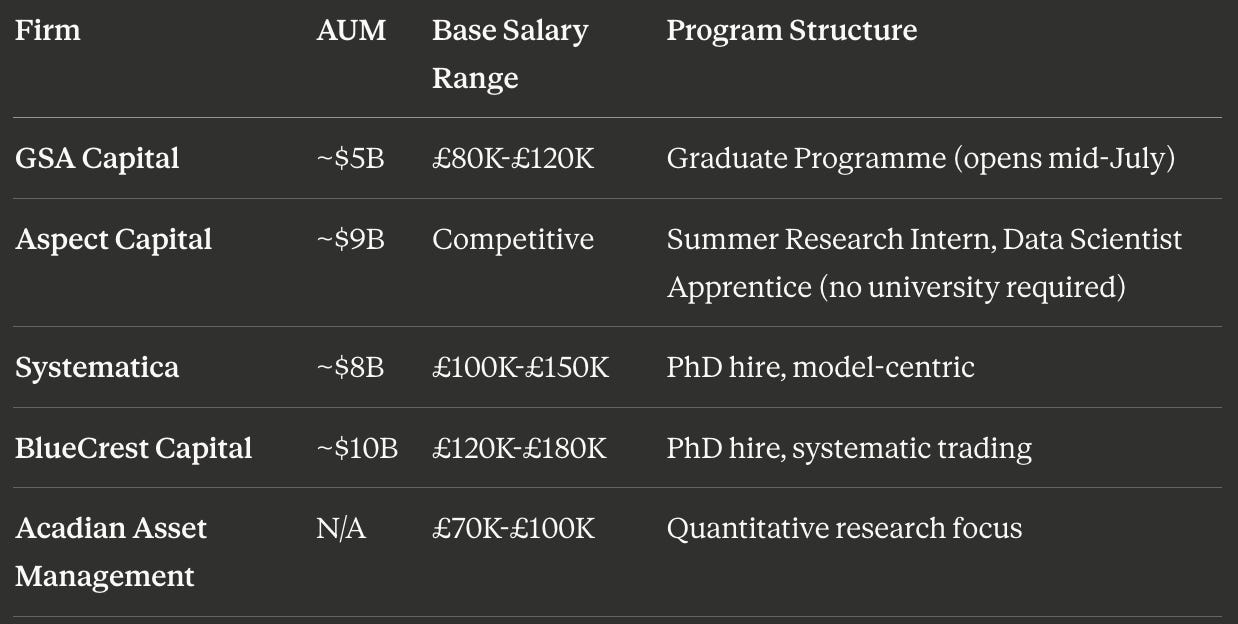 UK Systematic: £80K-£150K base (Man AHL, XTX, QRT)