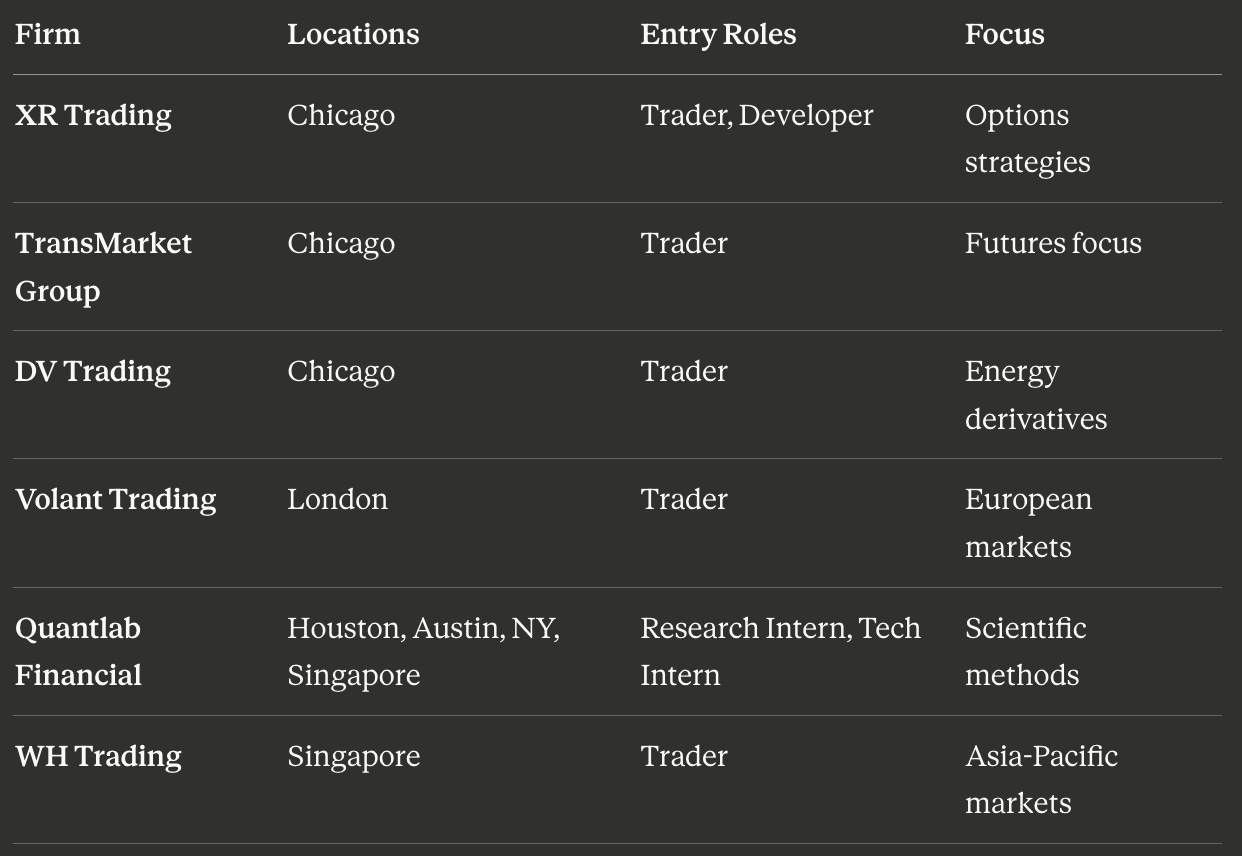 Summer 2026 internships: Most Tier 1 processes (Citadel, Jane Street, HRT, Point72) opened July 2025 and are NOW CLOSED or in final interview rounds