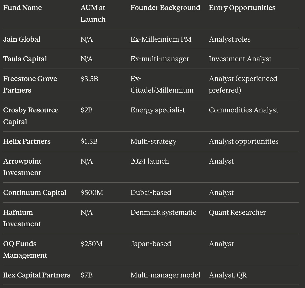 600+ Firms Count: Represents curated subset of global hedge fund universe where entry-level positions were identified through public sources. Not a comprehensive count of all existing hedge funds. Selection criteria: documented graduate recruitment via career pages, job postings, or verified industry databases.