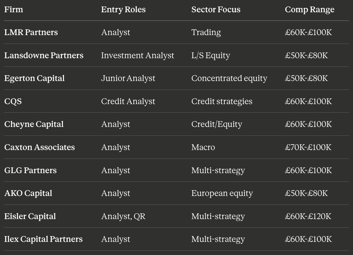 Methodology Note: The 600+ figure represents firms where we identified specific entry-level roles (analyst, trader, quant researcher, software engineer) through public career pages, job postings, or industry databases. This is not the total number of hedge funds globally it is the subset with documented graduate recruitment programs.